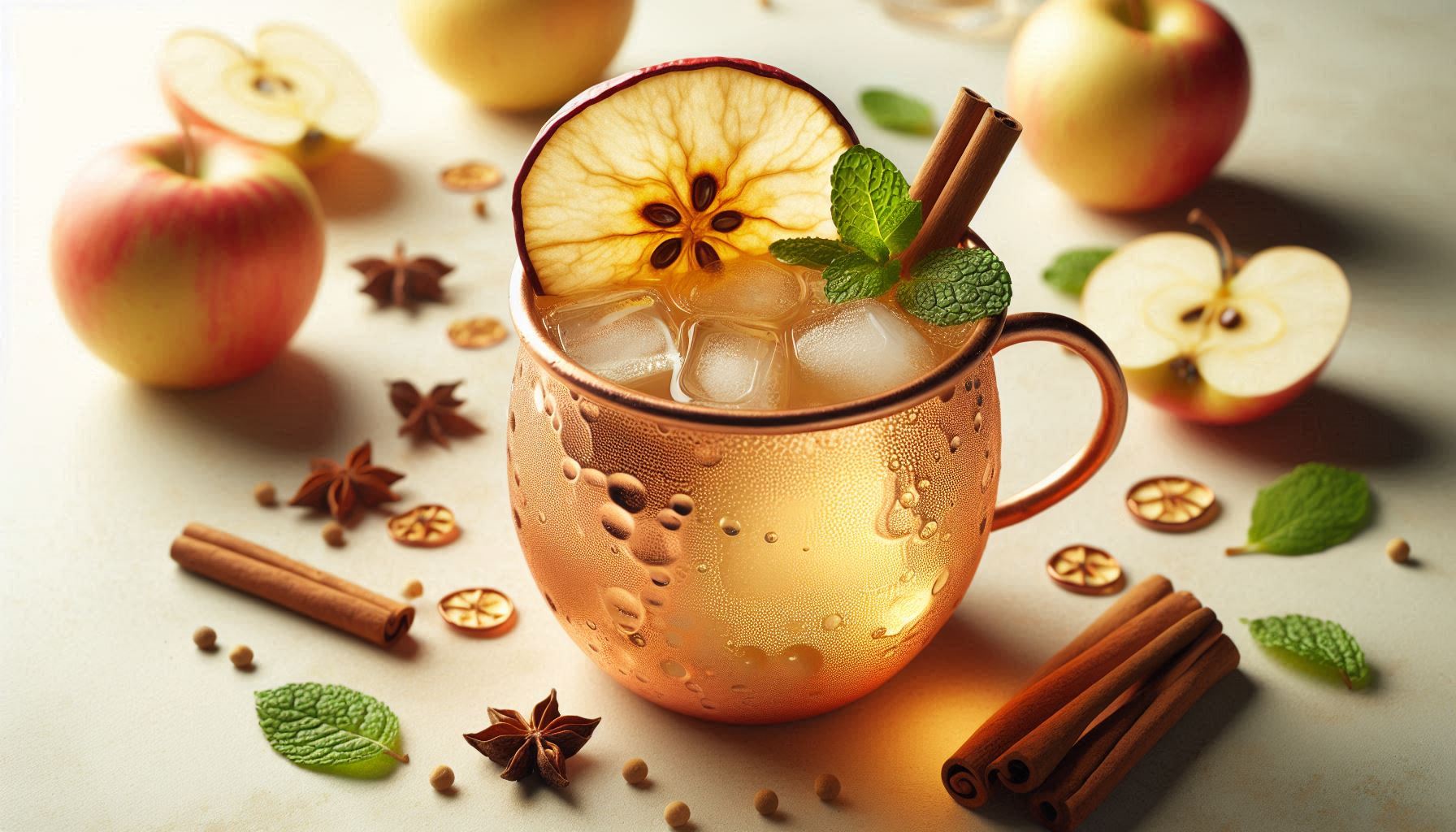 Twist du Moscow Mule avec des notes fruitées et une rondelle de pomme séchée.